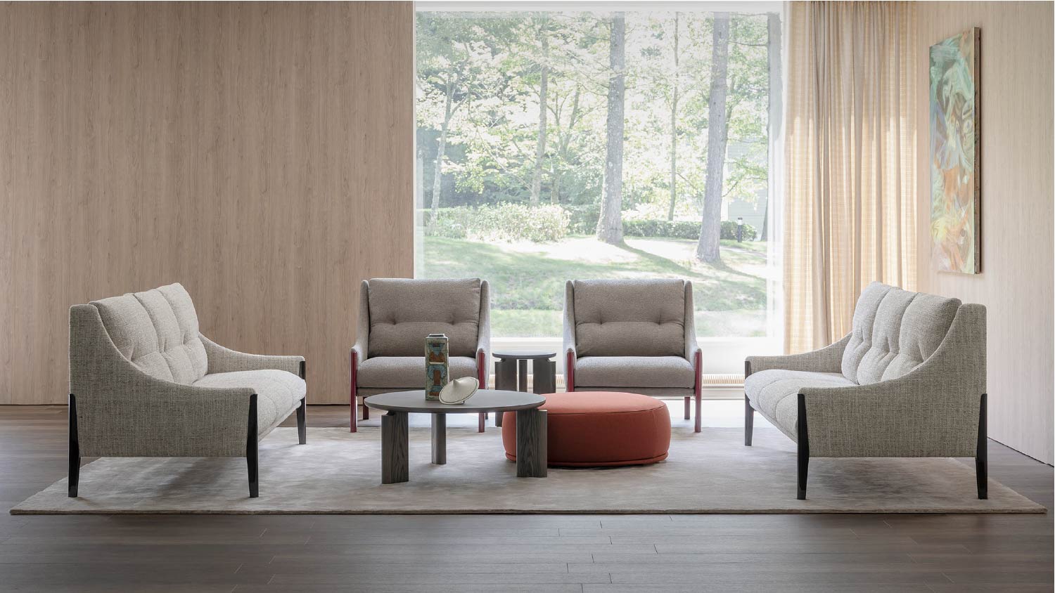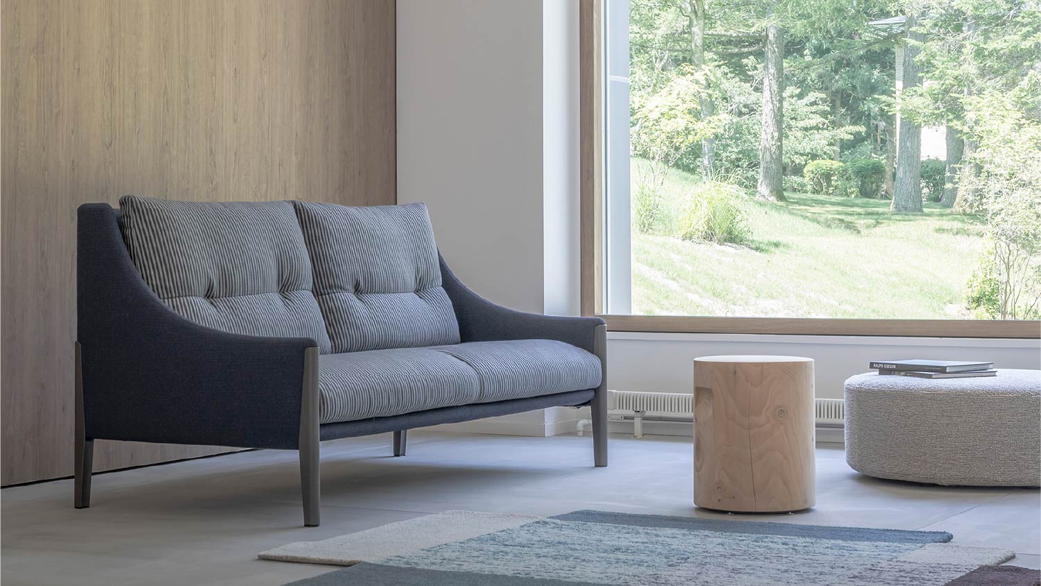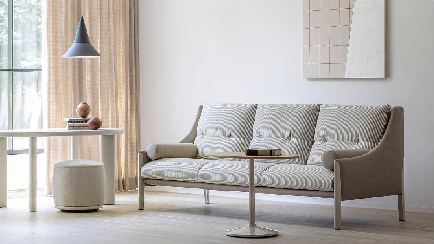 A sofa with a classical silhouette, flowing from the arms to the back. The slightly higher back panel encourages a graceful sitting posture, naturally aligning the spine.
