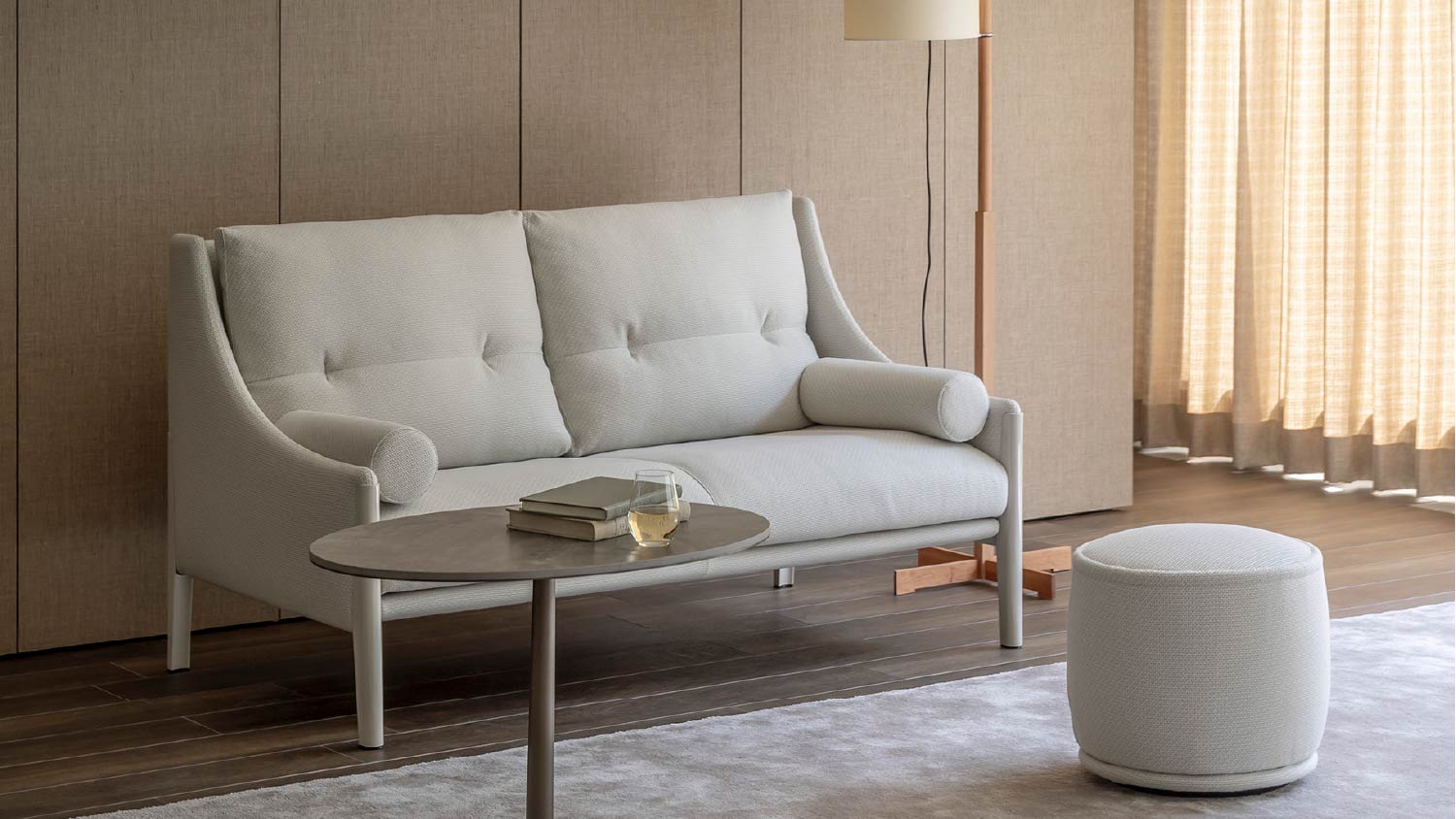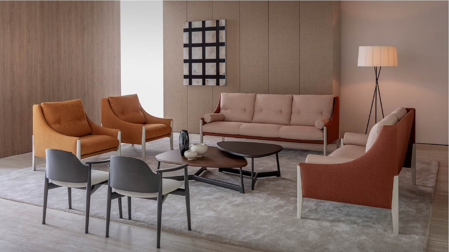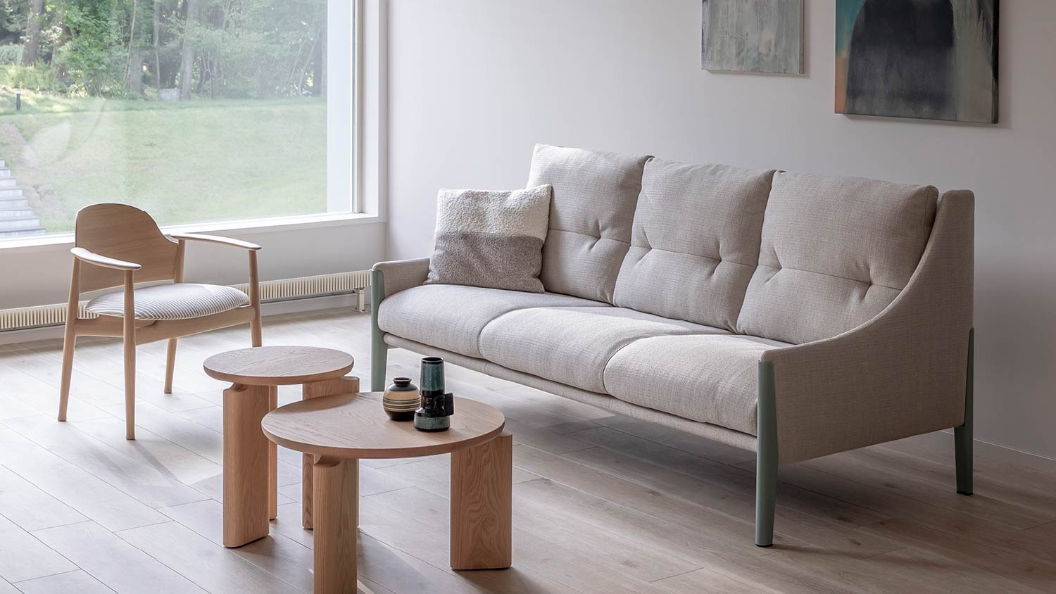 A sofa with a classical silhouette, flowing from the arms to the back. The slightly higher back panel encourages a graceful sitting posture, naturally aligning the spine.